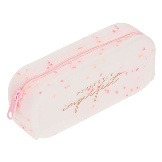 Училищен силиконов несесер с едно отделение, 18x5x7 см. - Розов