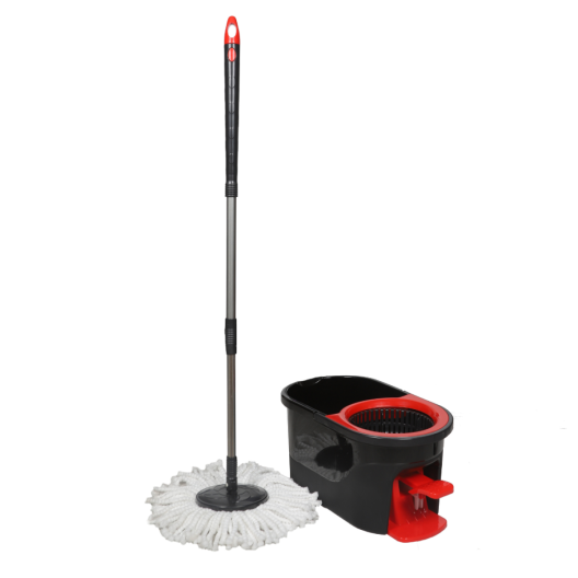 За да ви предостави максимално удобство по време на употреба, мопът е снабден с регулируема дръжка, която позволява на всеки да намери най-удобния ъгъл за почистване. Така можете да постигнете перфектни резултати без напрежение в ръцете и гърба си. Също така, благодарение на интелигентния механизъм с педал на кофата процесът по изцеждане на водата става бърз и без прекалено навеждане или замърсяване на ръцете ви.