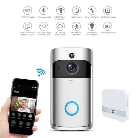 Видео звънец домофон/ 720P интерком, Връзка със смартфон, Нощно виждане, Детектор за движение